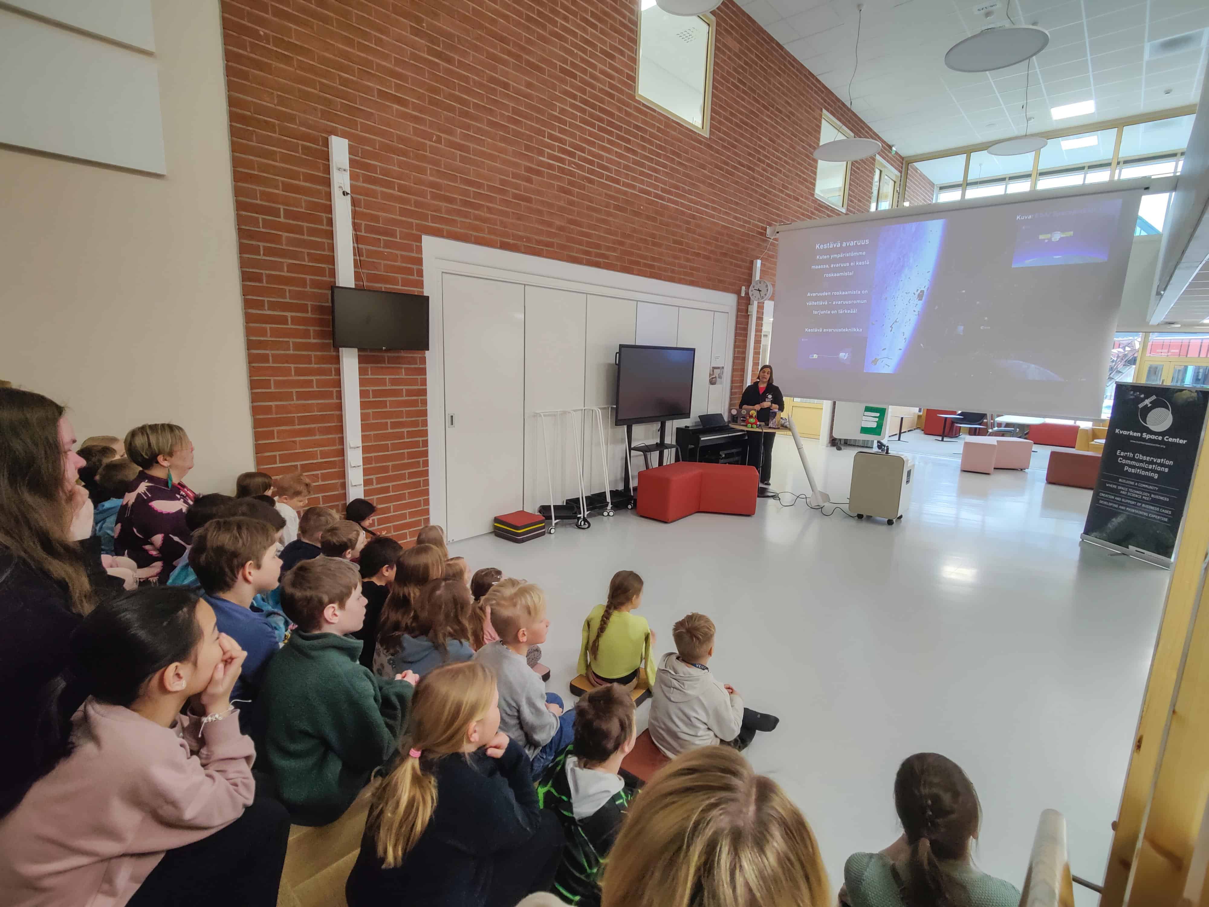 Together with Professor Heidi Kuusniemi, LUMA Centre Ostrobothnia Director Janne Koljonen, and research assistant Susanna Litmanen, we spent a fun morning with 140 pupils and their teachers, diving into the world of satellites, rockets, and space debris. Many hands shot up during the Q&A session after the presentation – space certainly sparked plenty of curiosity!